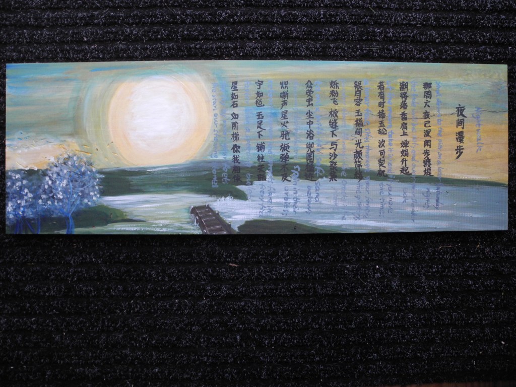 In 2008, I moved to the USA and since then I have been impressed by the creative and diverse Western art forms. In 2015, I became a member of Roost Studio art gallery in New Paltz, which is where I teach Tai Chi, and show my art work. In 2017 and 2019, I had my first two art shows “Art of Tao” at Roost Studio.